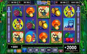 Asili ya mchezo ni msitu mzuri na nyasi za kijani na maua mengi ya kupendeza ambayo huwafurahisha wadudu wanaohitajika katika maumbile. Nguzo za sloti ni za samawati, ambayo inasisitiza kabisa uzuri wa ishara.