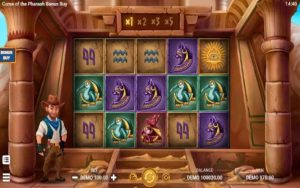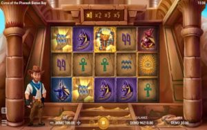 Curse of the Pharaoh Bonus Buy ni sehemu ya video ambayo ina safuwima tano zilizowekwa katika safu ulalo tatu na mistari 20 ya malipo isiyobadilika. Ili kupata ushindi wowote, unahitaji kuunganisha alama tatu au zaidi zinazolingana kwenye mistari ya malipo.
