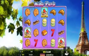Hello Paris ni mchezo wa kasino ambao una safuwima tano zilizopangwa kwenye safu nne na mistari 40 ya malipo isiyobadilika. Ili kupata ushindi wowote, unahitaji kuunganisha alama tatu au zaidi zinazolingana kwenye mistari ya malipo.