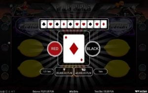 Mchezo pia una ziada ya kamari. Na aina hii ya bonasi unaweza kuishinda kwa kila ushindi mara mbili. Unachotakiwa kufanya ni kukisia ni rangi ipi itakuwa kwenye karata inayofuatia inayotolewa kutoka kwenye kasha, nyeusi au nyekundu.